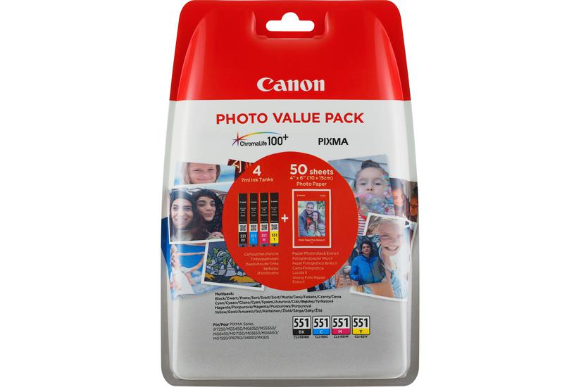 Vi har fundet Canon Cli- C M Y Bk Photo Value Pack – Pakker – Sort Gul Cyan Magenta – Original – Blækbeholder Papirsæt fra Canon hos Føniks Computer i kategorien It Og Elektronik Scanprint Blæk Og Toner Blækpatroner Inkjet. Canon CLI-551 C/M/Y/BK Fotoværdipakke – Original Canon-blæk for flotte og klare farverManglende farvepræcision kan ødelægge dine fotoudskrifter og ende med at skade dit ry som fotograf. Med Canon CLI-551 C/M/Y/BK Fotoværdipakken er du sikker på at få farv